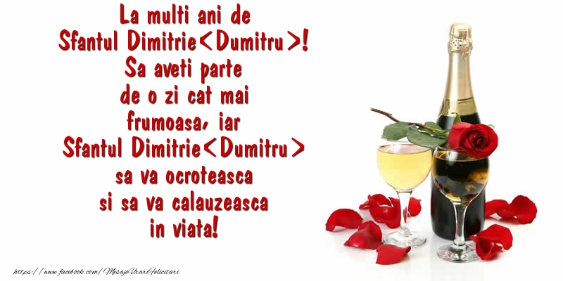 La multi ani de Sfantul Dimitrie(Dumitru)! Sa aveti parte de o zi cat mai frumoasa, iar Sfantul Dimitrie(Dumitru) sa va ocroteasca si sa va calauzeasca in viata!