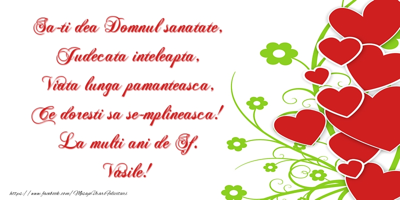 Sa-ti dea Domnul sanatate, Judecata inteleapta, Viata lunga pamanteasca, Ce doresti sa se-mplineasca! La multi ani de Sf. Vasile!