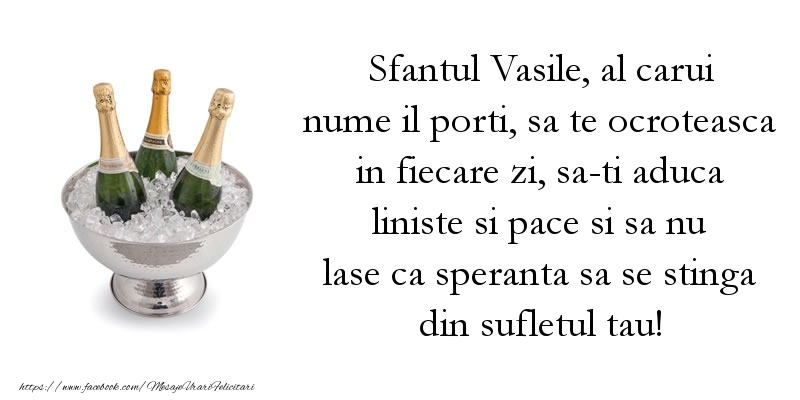 Sfantul Vasile, al carui nume il porti, sa te ocroteasca in fiecare zi, sa-ti aduca liniste si pace si sa nu lase ca speranta sa se stinga din sufletul tau! La multi ani cu impliniri si numai cu momente frumoase in viitor!