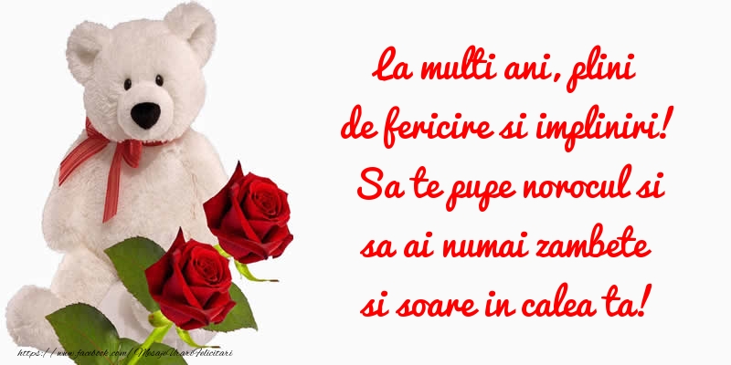 La multi ani, plini de fericire si impliniri! Sa te pupe norocul si sa ai numai zambete si soare in calea ta!