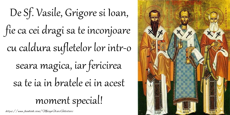 De Sf. Vasile, Grigore si Ioan, fie ca cei dragi sa te inconjoare cu caldura sufletelor lor intr-o seara magica, iar fericirea sa te ia in bratele ei in acest moment special!