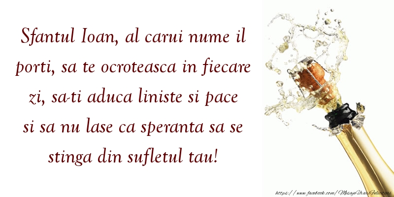 Sfantul Ioan, al carui nume il porti, sa te ocroteasca in fiecare zi, sa-ti aduca liniste si pace si sa nu lase ca speranta sa se stinga din sufletul tau!