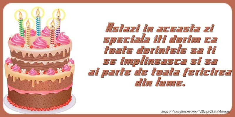 Astazi in aceasta zi speciala iti dorim ca toate dorintele sa ti se implineasca si sa ai parte de toata fericirea din lume.
