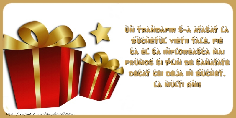 Un trandafir s-a atasat la buchetul vietii tale. Fie ca el sa infloreasca mai frumos si plin de sanatate decat cei deja in buchet. La Multi Ani!