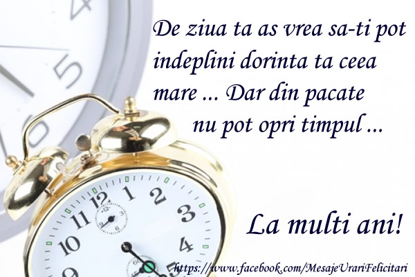 De ziua ta as vrea sa-ti pot indeplini dorinta ta ceea mare ... Dar din pacate nu pot opri timpul ... La multi ani!
