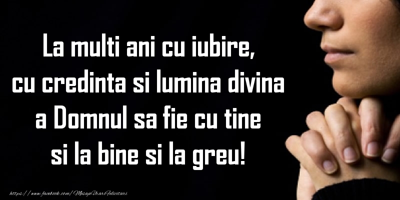 La multi ani cu iubire, cu credinta si lumina divina a Domnul sa fie cu tine si la bine si la greu!
