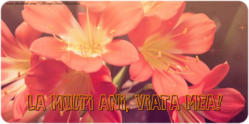La multi ani! Sa calci mereu pe trandafiri si flori nemuritoare. Sa ai in ochii tai priviri, ca razele de soare. Sa ai o viata ca-n povesti, cu vise implinite. Sa darui celor pe care-i iubesti, doar clipe fericite!