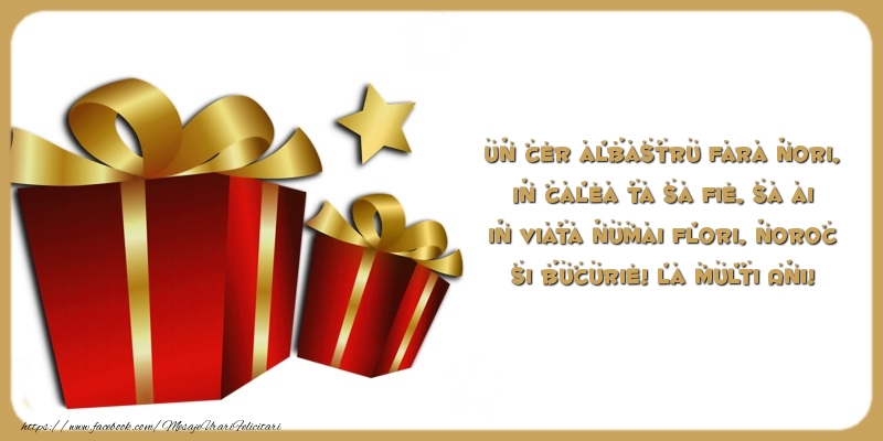 Un cer albastru fara nori, In calea ta sa fie, Sa ai in viata numai flori, Noroc si bucurie! La Multi Ani!