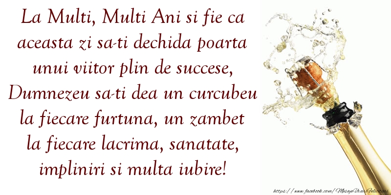 La Multi, Multi Ani si fie ca aceasta zi sa-ti dechida poarta unui viitor plin de succese, Dumnezeu sa-ti dea un curcubeu la fiecare furtuna, un zambet la fiecare lacrima, sanatate, impliniri si multa iubire!