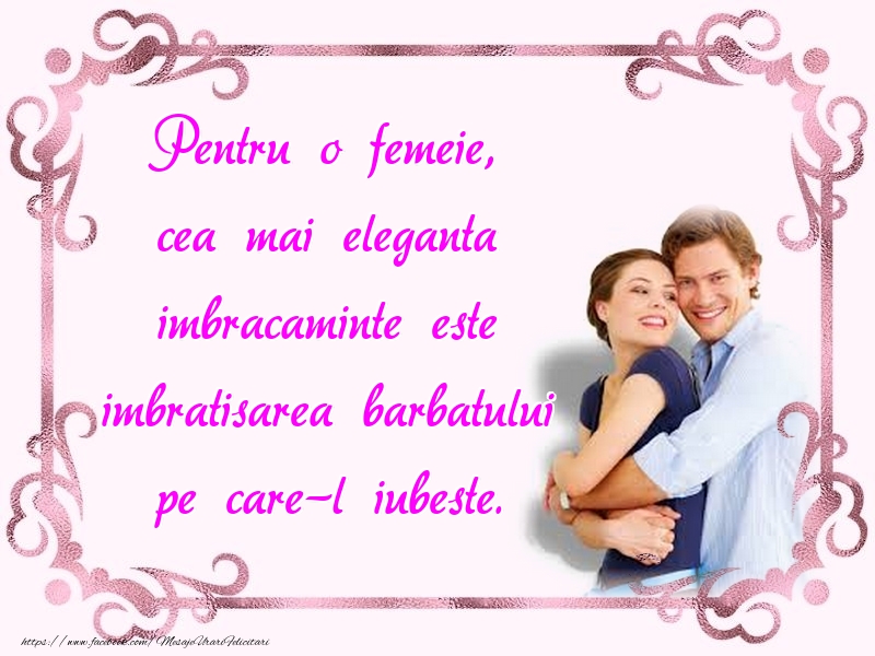 Pentru o femeie, cea mai eleganta imbracaminte este imbratisarea barbatului pe care-l iubeste.