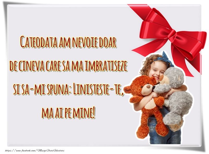 Cateodata am nevoie doar de cineva care sa ma imbratiseze si sa-mi spuna: Linisteste-te, ma ai pe mine!
