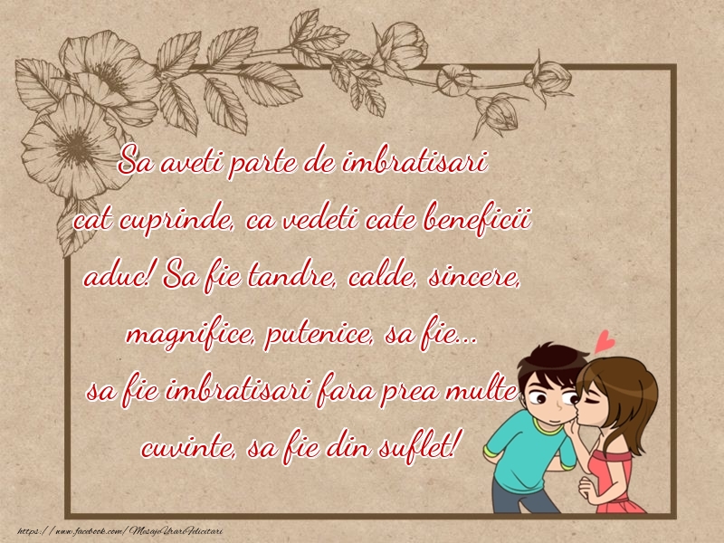 Sa aveti parte de imbratisari cat cuprinde, ca vedeti cate beneficii aduc! Sa fie tandre, calde, sincere, magnifice, putenice, sa fie... sa fie imbratisari fara prea multe cuvinte, sa fie din suflet!