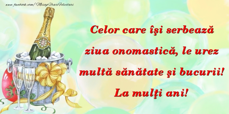 Celor care îşi serbează ziua onomastică, le urez multă sănătate şi bucurii! La mulţi ani!