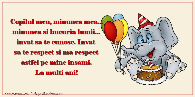 Copilul meu, minunea mea... minunea si bucuria lumii... invat sa te cunosc. Invat sa te respect si ma respect astfel pe mine insami. La multi ani!