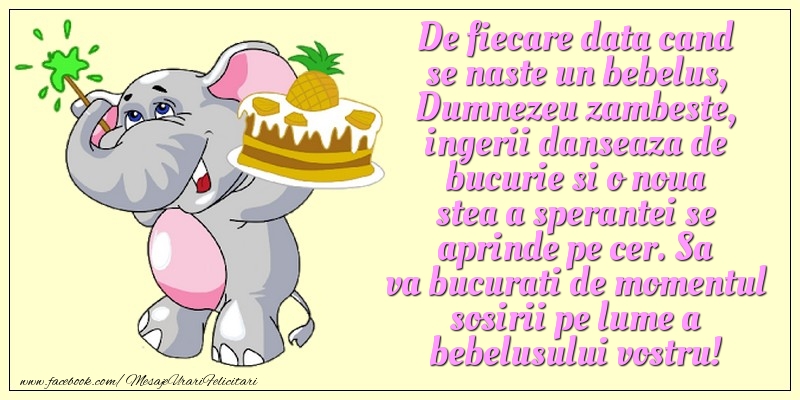 De fiecare data cand se naste un bebelus, Dumnezeu zambeste, ingerii danseaza de bucurie si o noua stea a sperantei se aprinde pe cer. Sa va bucurati de momentul sosirii pe lume a bebelusului vostru!