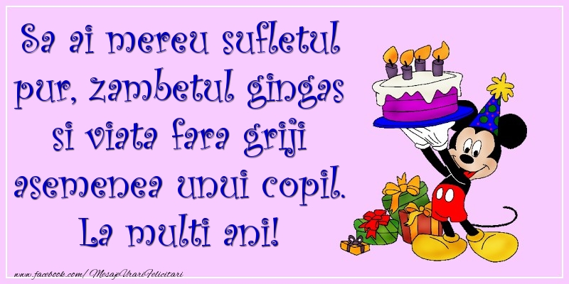 Sa ai mereu sufletul pur, zambetul gingas si viata fara griji asemenea unui copil. La multi ani!