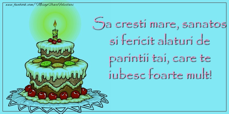 Sa cresti mare, sanatos si fericit alaturi de parintii tai, care te iubesc foarte mult!