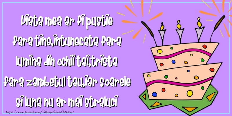 Viata mea ar fi pustie fara tine,intunecata fara lumina din ochii tai,trista fara zambetul tau,iar soarele si luna nu ar mai straluci la fel fara tine...