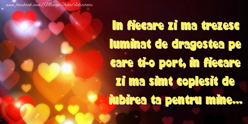 In fiecare zi ma trezesc luminat de dragostea pe care ti-o port, in fiecare zi ma simt coplesit de iubirea ta pentru mine... Lumea imi pare atat de minunata cand tu zambesti...